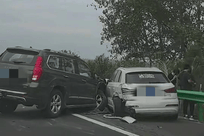 高速上一辆SUV低速乱蹿 后车司机帮助未果 车辆撞上收费站石墩